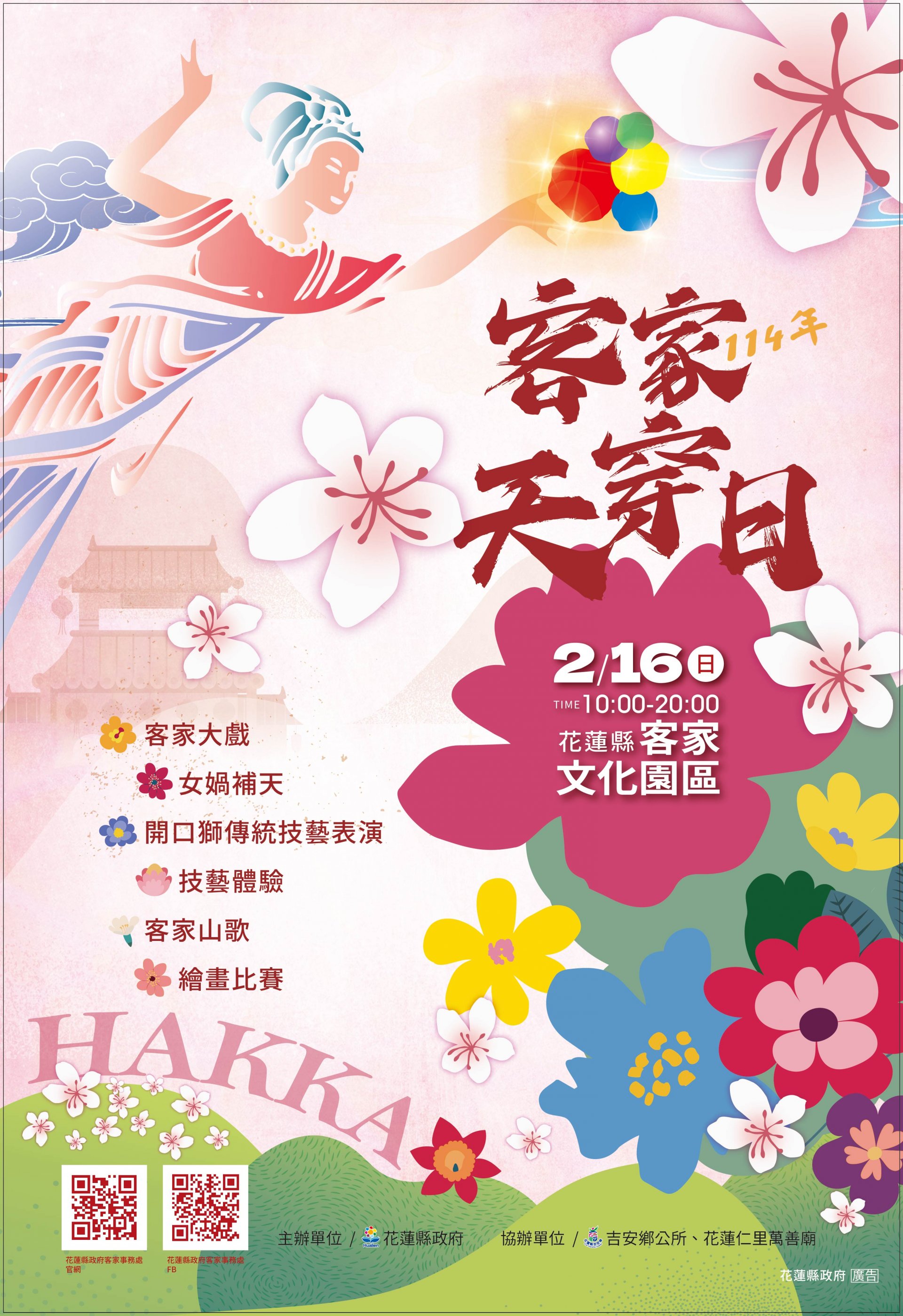旨揭活動訂於114年2月16日(星期日)假花蓮縣客家文化園區(南埔公園)辦理。